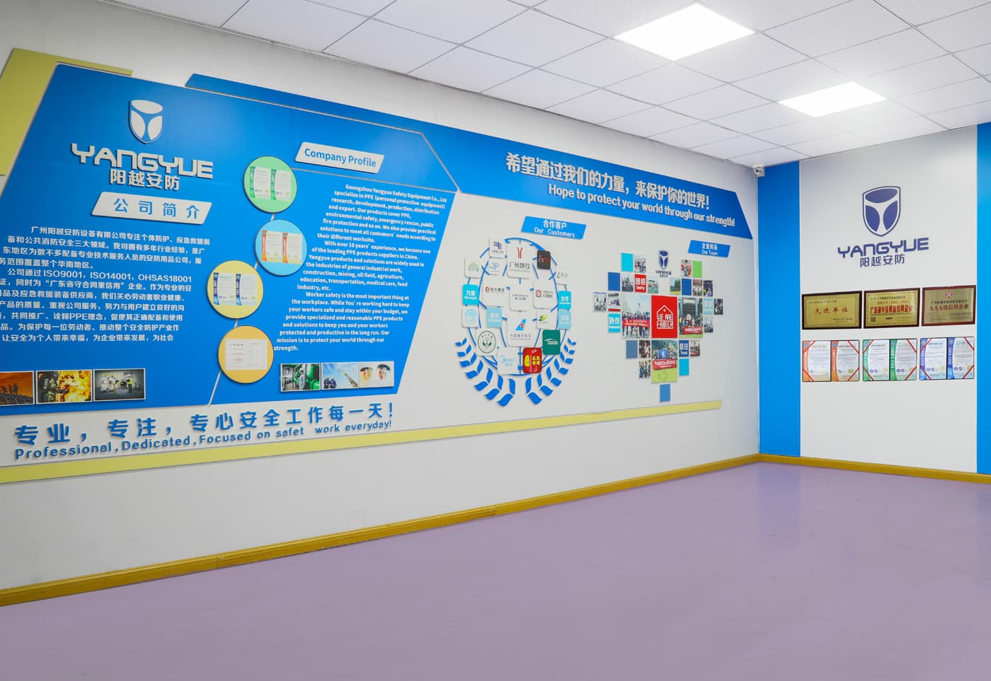 廣州陽越安防設(shè)備有限公司是一家專業(yè)從事個(gè)體防護(hù)、應(yīng)急救援裝備、公共消防安全的企業(yè)。公司擁有多年的行業(yè)經(jīng)驗(yàn),是廣東地區(qū)為數(shù)不多具有專業(yè)技術(shù)服務(wù)人員配備的安全防護(hù)用品公司。服務(wù)范圍覆蓋廣東,輻射整個(gè)華南地區(qū)。公司創(chuàng)建了“陽越安防”這一品牌,其品牌形象為藍(lán)色守護(hù)的盾牌,寓意著“預(yù)防”和“保護(hù)”。公司從2016-2019年連續(xù)四年被評為“廣東省守合同重信用”企業(yè)。通過了ISO9000質(zhì)量管理體系認(rèn)證,ISO14000環(huán)境管理體系認(rèn)證,OHSAS18001認(rèn)證,同時(shí)被廣州市安全生產(chǎn)委員會(huì)評選為“廣州市2016年度企業(yè)安全生產(chǎn)工作先進(jìn)單位”,并連續(xù)多年獲得“納稅信用A級”等榮譽(yù)稱號。