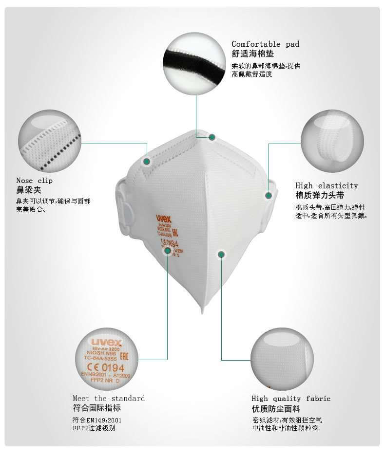 uvex sily- Airc系列產(chǎn)品在研發(fā)的過程就不斷強調(diào)產(chǎn)品的舒適性能。優(yōu)唯斯粉塵過濾技術(shù)確保每層濾材對顆粒物的封鎖功能。
