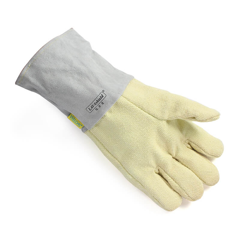 熔巖盾抗高溫手套長38cm,采用高拉力、阻燃的杜邦Kevlar 4線防火線縫制;手袖采用抗割及耐磨損的牛二層芯皮;手掌則采用746g/m2芳族聚酰胺合成纖維制成;內層則是由高效隔熱的羊絨里層以及防火阻燃純棉吸汗內里組成;能適合在330℃高溫環(huán)境下持續(xù)工作或者在538℃超高溫環(huán)境下間斷工作。