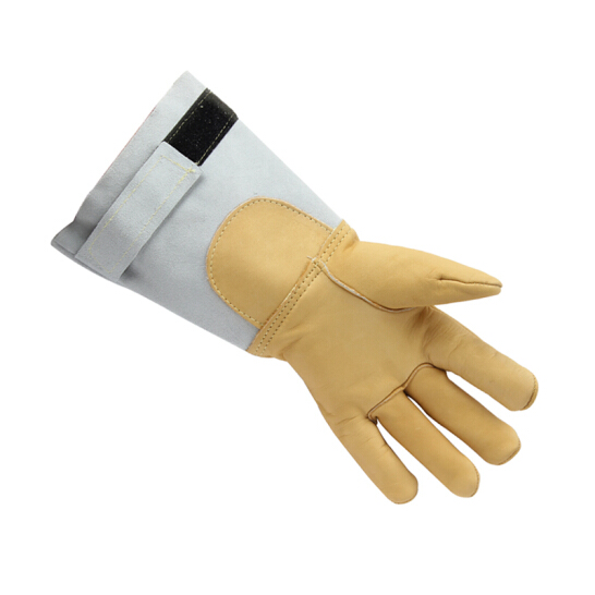 消防員手套,具有防火耐高溫、防割及防水功能;符合EN659標(biāo)準(zhǔn);防水牛皮表面;嵌入式大拇指設(shè)計(jì);KEVLAR針織襯里;粗革護(hù)腕保護(hù)動脈;KEVLAR線縫合;自動粘貼束帶;長度:40厘米;顏色:米色。