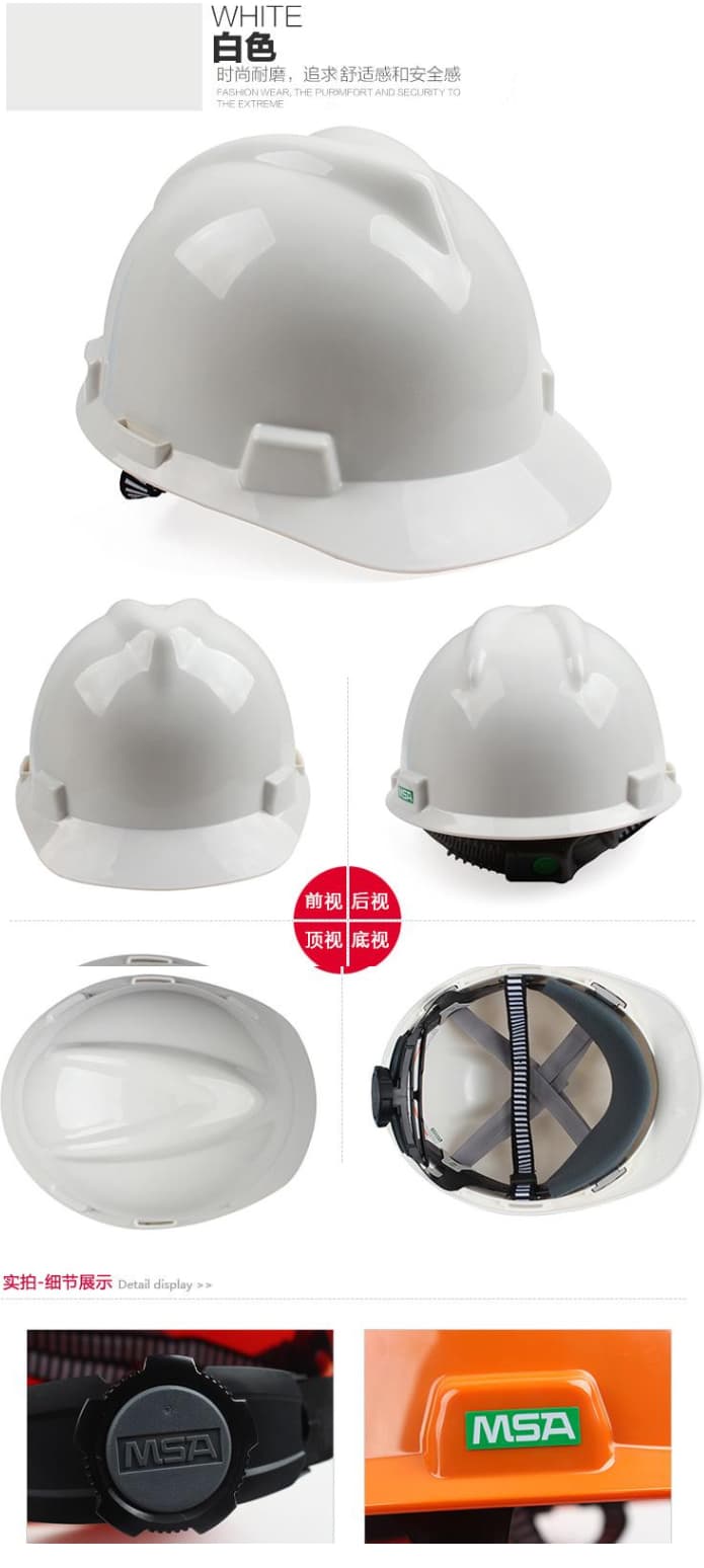 梅思安 10172902 V-GardPE 標(biāo)準(zhǔn)型安全帽采用PE帽殼+超愛戴帽襯+針織布吸汗帶+D型下頦帶而成,適用于環(huán)境建筑、化工、冶金、港口、電力、石油等行業(yè)里。有橙、黃、藍(lán)、白以及紅等顏色。