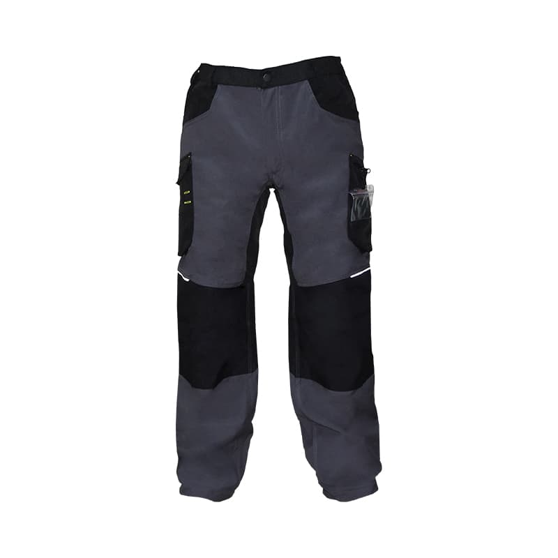 馬克5系列帆布工裝褲,60%棉、 40%滌綸,270g/m2;腰部松緊支撐,加強(qiáng)護(hù)膝設(shè)計(jì),兩側(cè)多功能口袋,易磨損部位采用考度拉面料獨(dú)立加強(qiáng);可保護(hù)穿著者免受微小的表面機(jī)械風(fēng)險(xiǎn),不用于防護(hù)化學(xué)、電或熱風(fēng)險(xiǎn),僅一般穿著;顏色:BN-米色+黑色 GN-灰色+黑色。